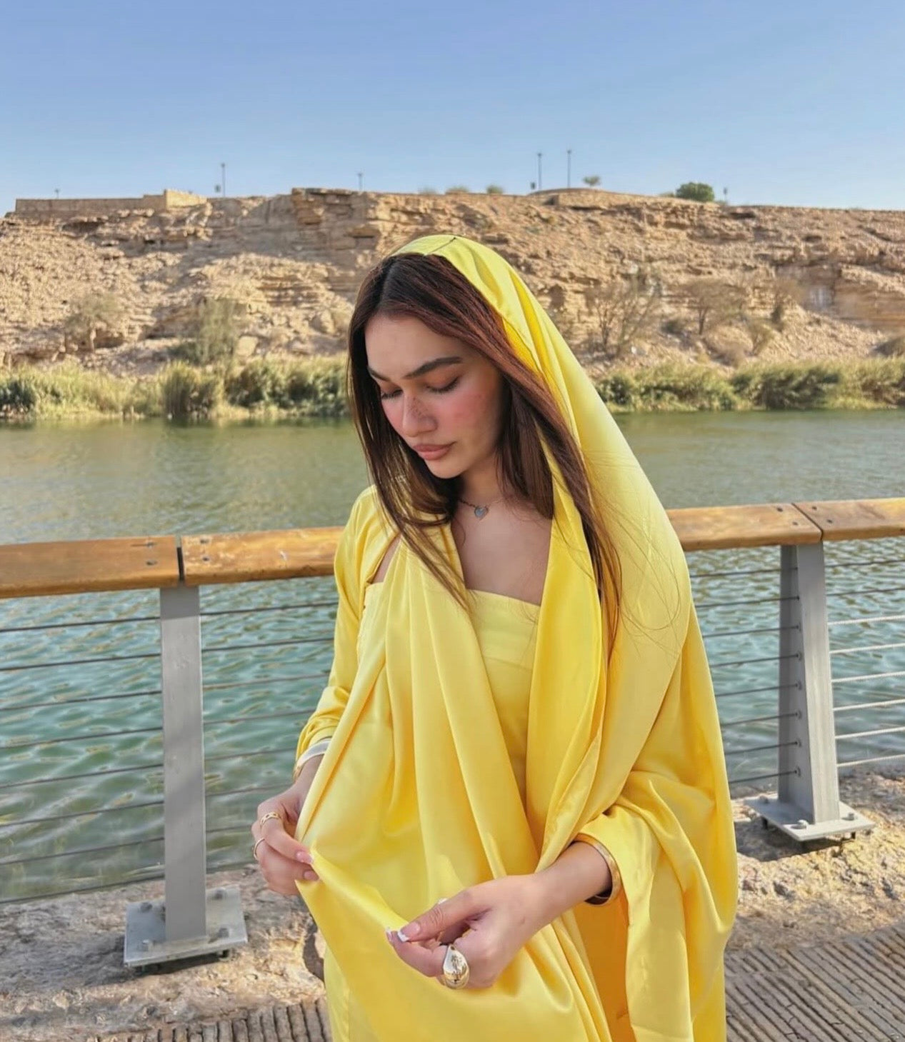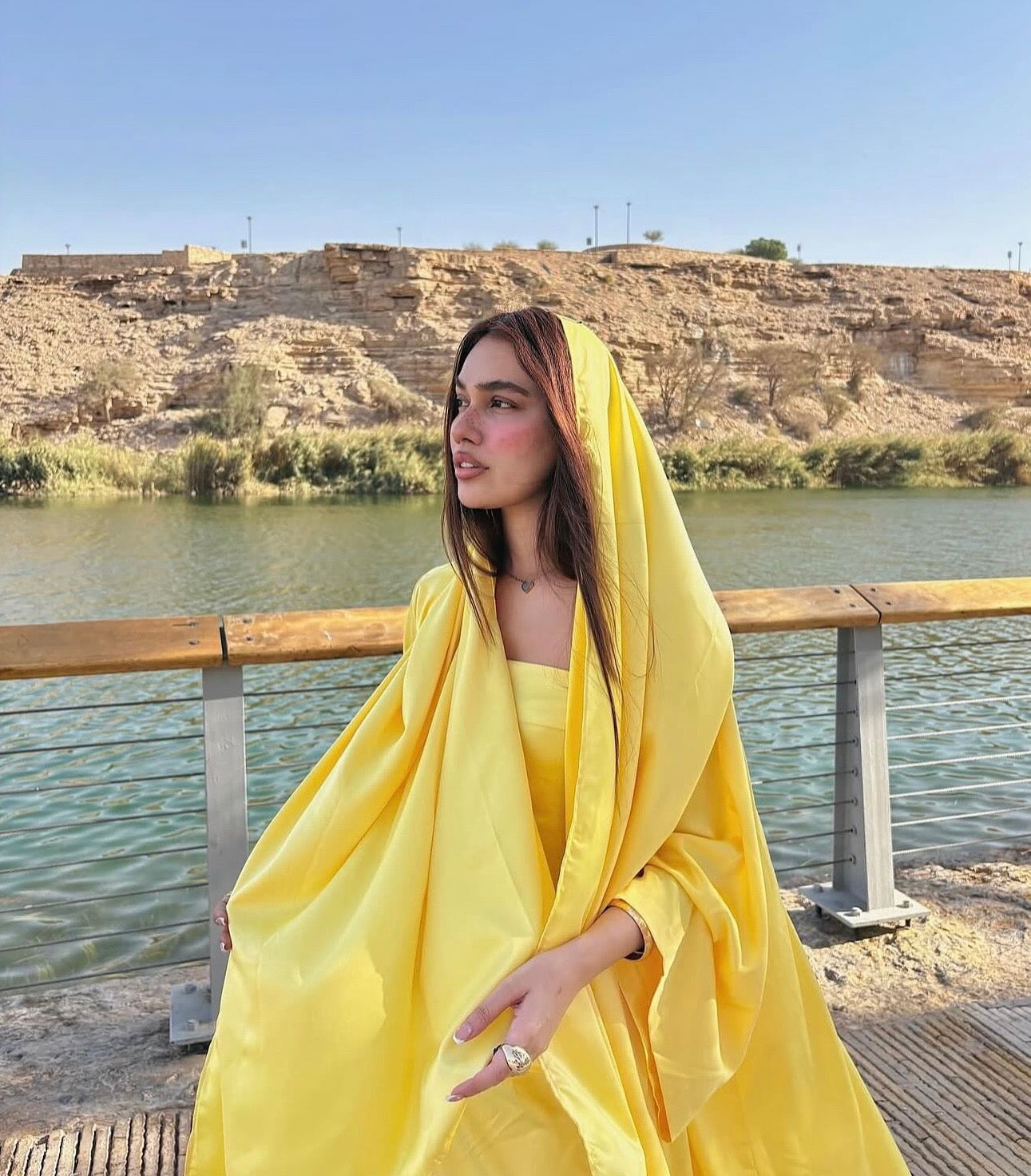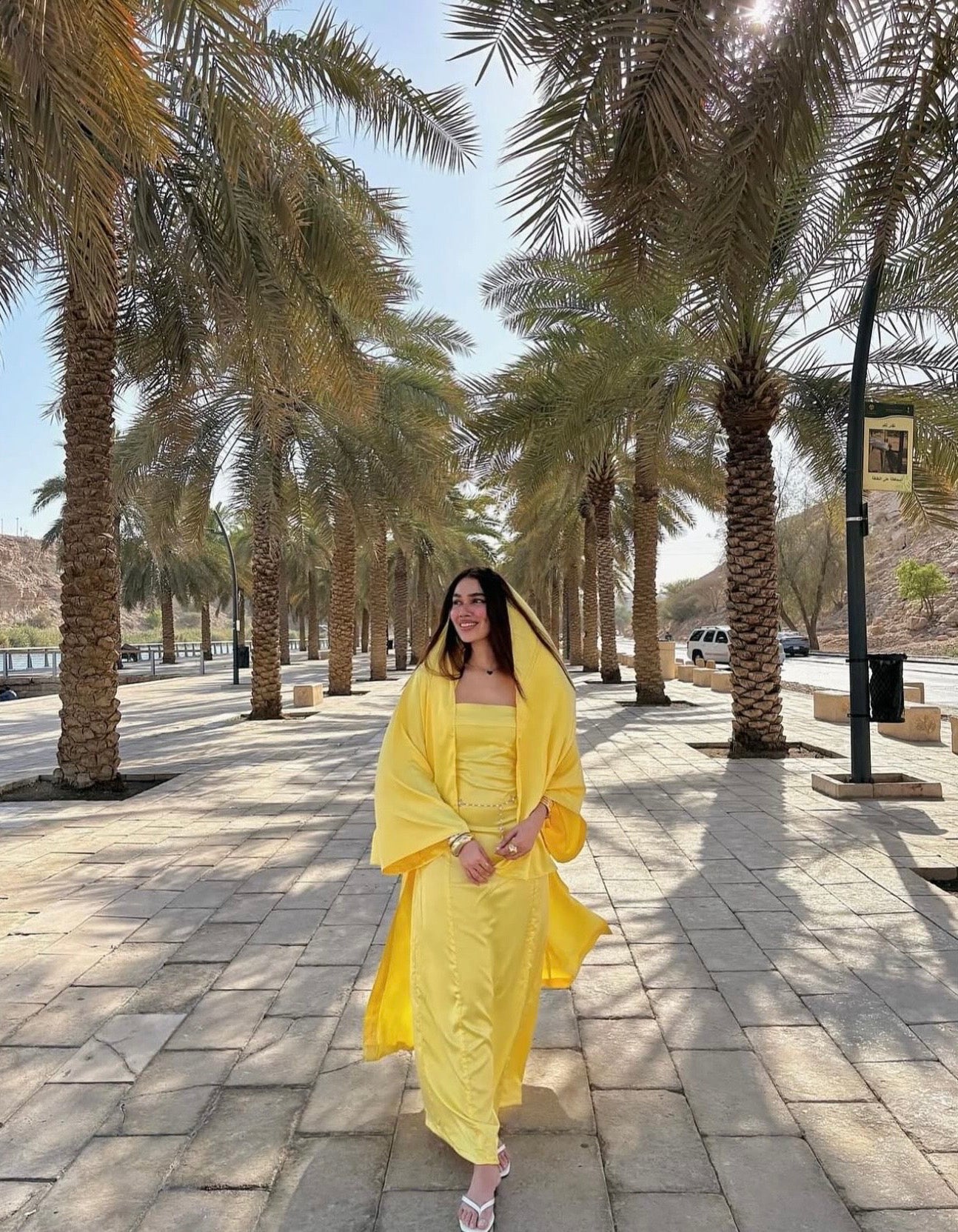 Belle Lumière - a radiant yellow open abaya paired with an inner dress, designed to move effortlessly from day to evening.
