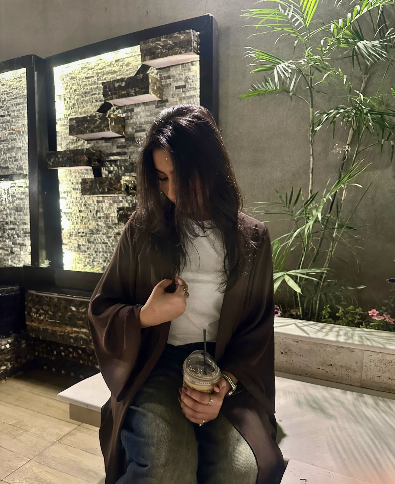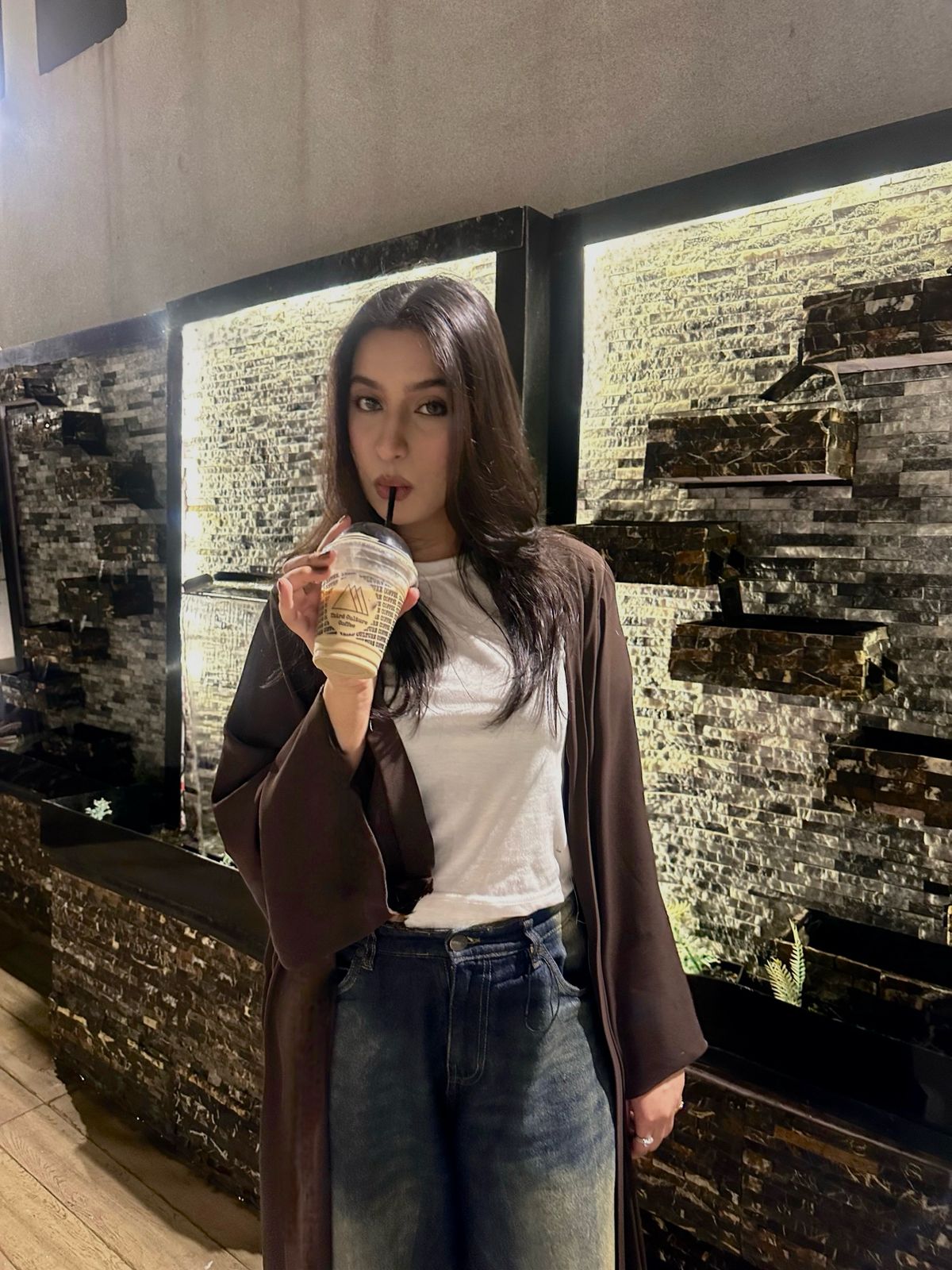 Plain Dark Brown Open Abaya